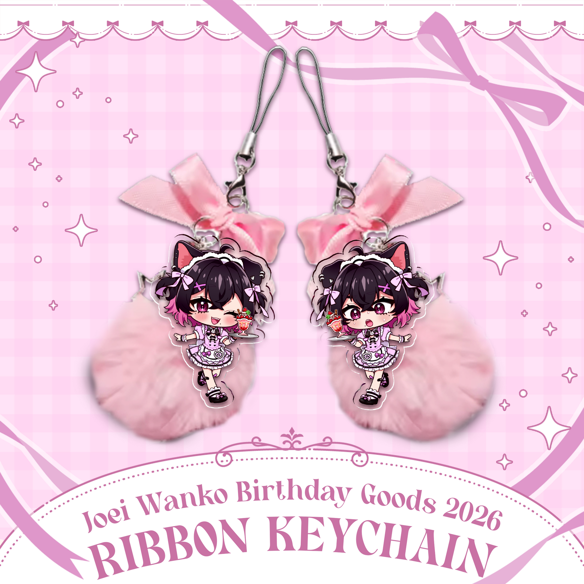 • x1 Two Sided 7cm Keychain with bow and fluff attachment