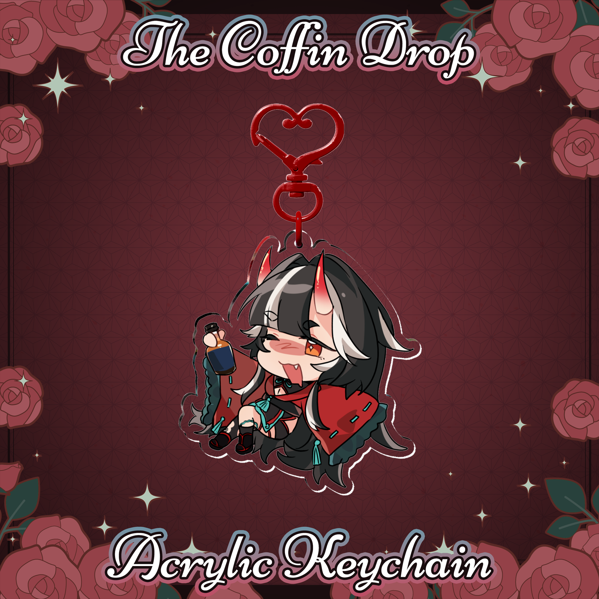 • x1 7cm Acrylic Keychain with a Red Heart-shaped Clasp